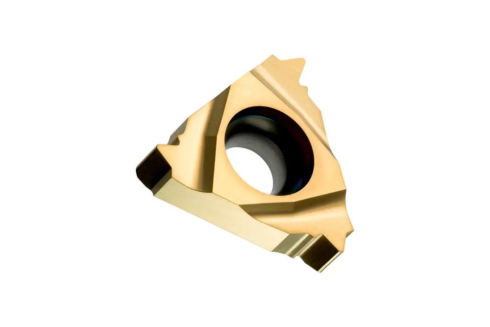 Прессованная односторонняя резьбонарезная пластина, треугольная с диаметром вписанной окружности 9,525 мм, для правостороннего нарезания наружной резьбы BSW с мелкозернистым карбидом WC-Co с покрытием PVD 19TPI T8030 в диапазонах ISO P25-P40/M20-M35 и K20-K40 для обработки стали, нержавеющей стали и чугуна.