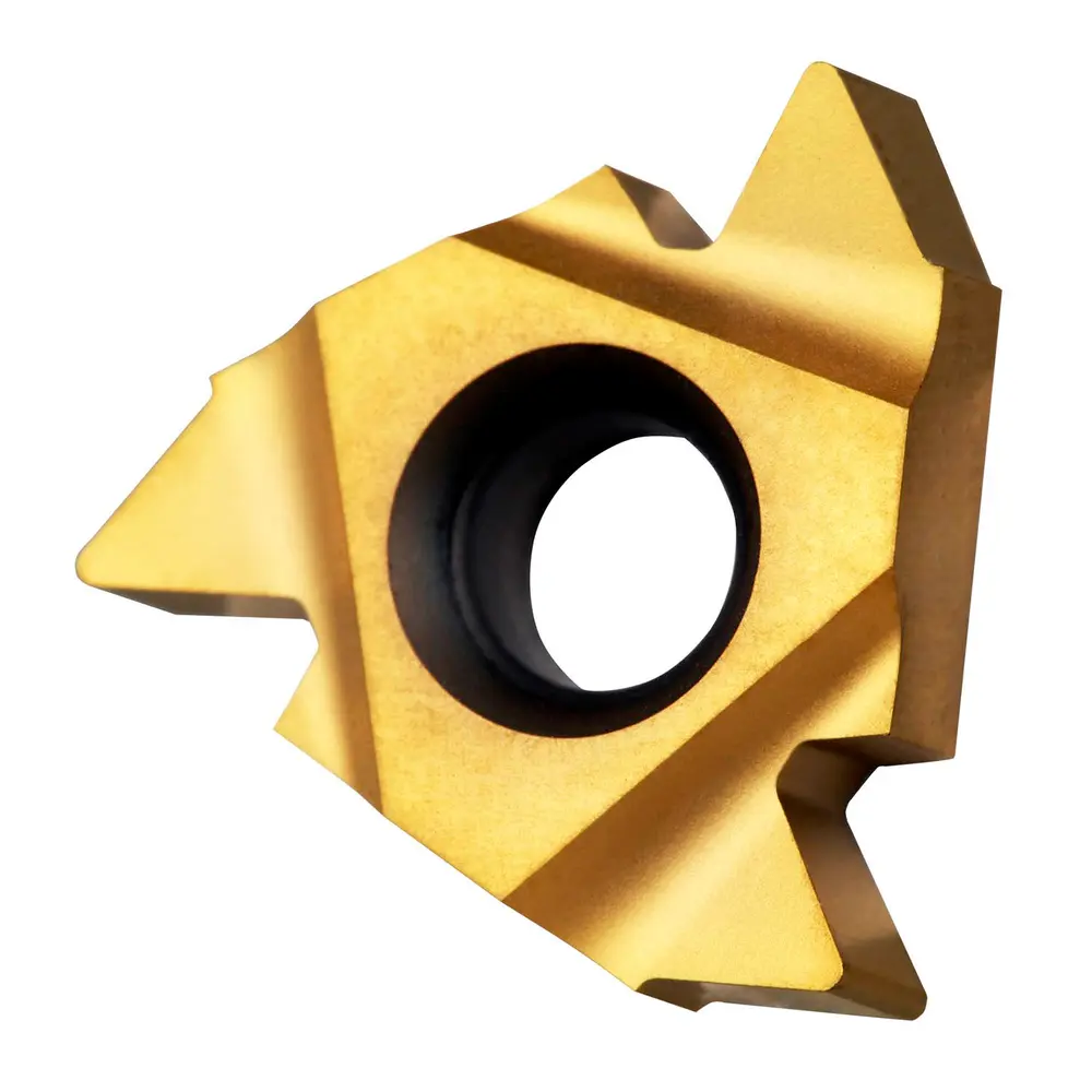 Односторонняя резьбонарезная пластина, треугольная с диаметром вписанной окружности 12,7 мм, для правого нарезания неполного профиля внутренней резьбы по британскому стандарту с 7–5 TPI, мелкозернистый карбид WC-Co с покрытием PVD T8030 в диапазонах ISO P25–P40/M20–M35 и K20–K40 для обработки стали, нержавеющей стали и чугуна.