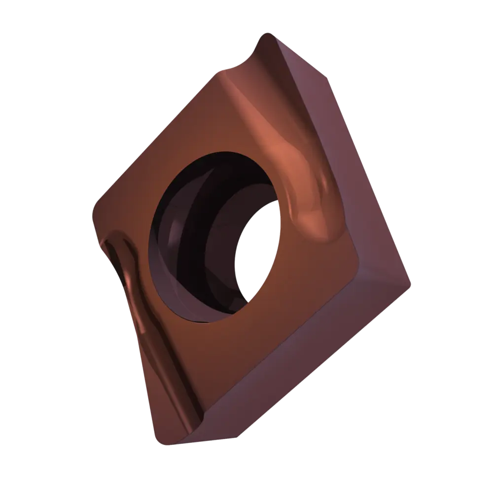 Односторонняя позитивная токарная пластина, ромб 80° с зазором 7°, диаметр вписанной окружности 6,35 мм, толщина 2,38 мм, радиус при вершине 0,4 мм, точность индексации в соответствии с классом допуска ISO-G, стружколом SI со скругленными режущими кромками, из сплава T8415.