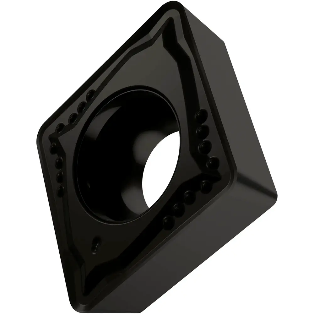 Односторонняя позитивная токарная пластина, ромбовидная 80° с зазором 7°, диаметр вписанной окружности 9,525 мм, толщина 3,97 мм, радиус вершины 0,8 мм, точность индексации в соответствии с классом допуска ISO M, стружколом FM с конструкцией кромки WIPER, из сплава T9325, функционально-градуированного твердого сплава WC-Co с покрытием MT-CVD в диапазонах ISO P15 -P35 и M10 -M30, для чистовой и получистовой обработки сталей и нержавеющих сталей.