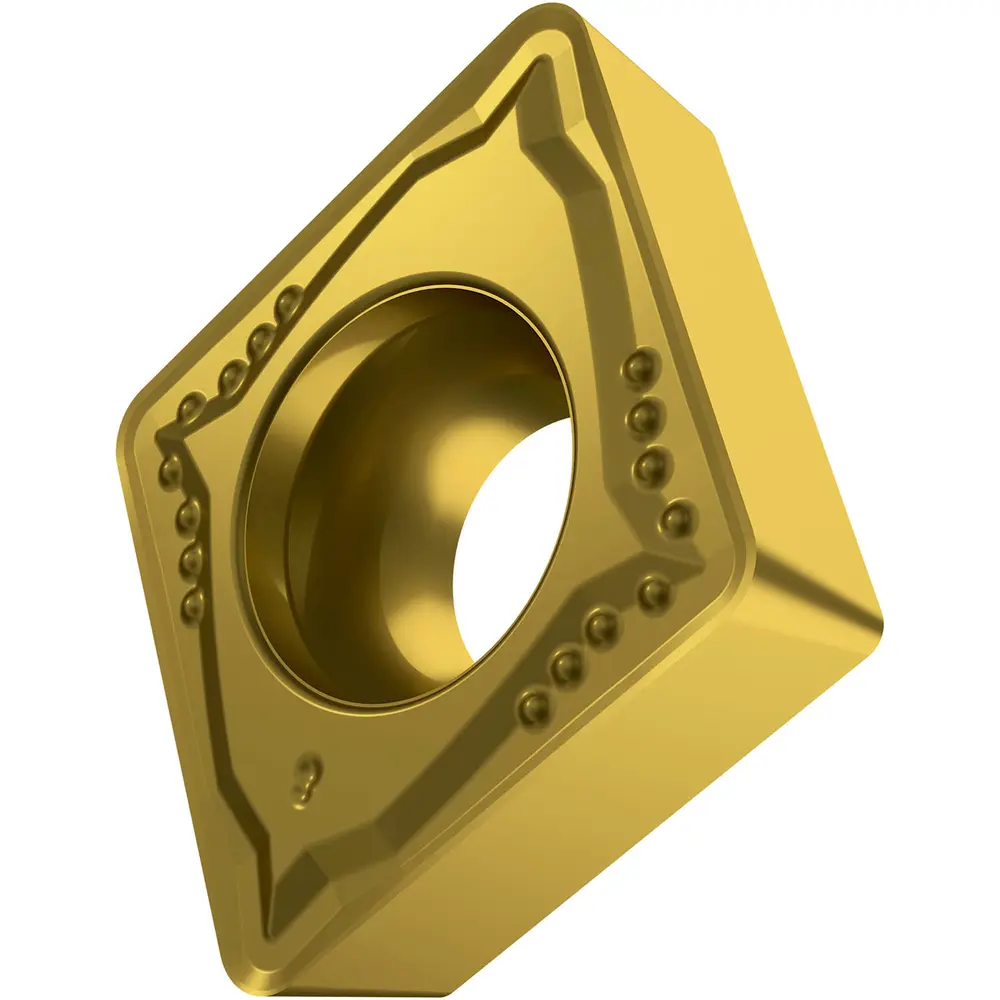 Односторонняя позитивная токарная пластина, ромб 80° с зазором 7°, диаметр вписанной окружности 12,7 мм, толщина 4,76 мм, радиус вершины 0,4 мм, точность индексации в соответствии с классом допуска ISO M, стружколом FM со скругленными режущими кромками, из сплава T8315, мелкозернистого твердого сплава WC-Co с покрытием PVD в диапазоне ISO M05 - M20, для чистовой и средней обработки нержавеющих сталей.