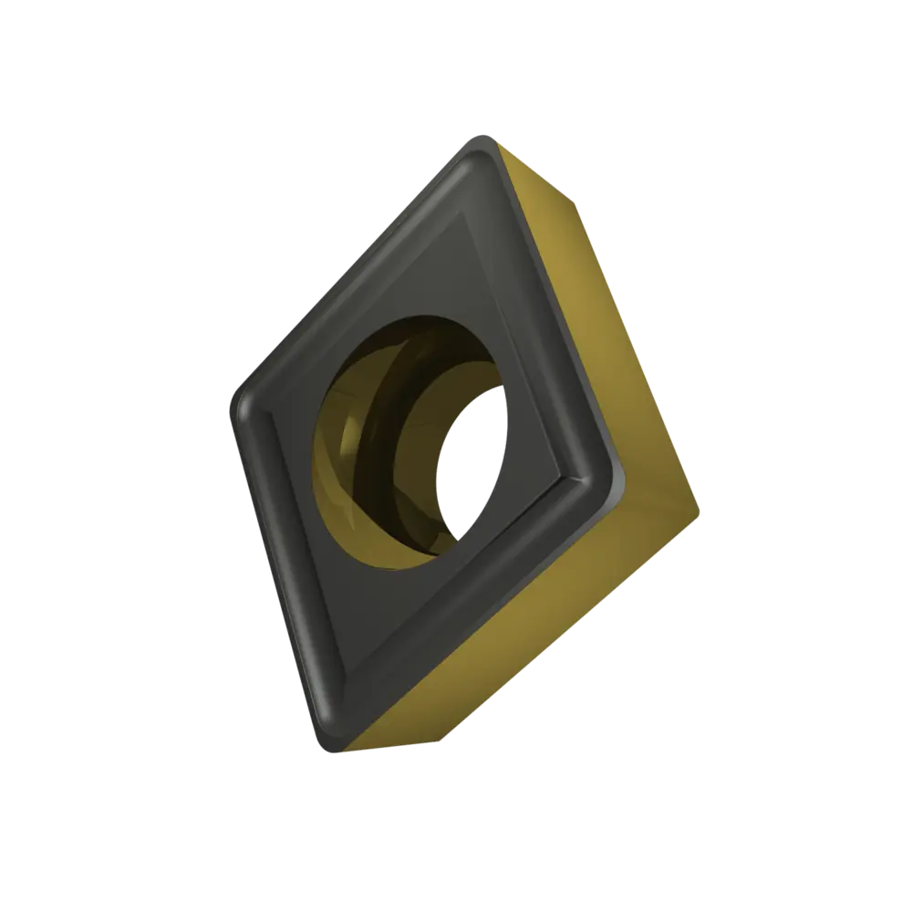 Односторонняя позитивная токарная пластина, ромбовидная 80° с зазором 7°, диаметр вписанной окружности 12,7 мм, толщина 4,76 мм, радиус вершины 0,8 мм, точность индексации в соответствии с классом допуска ISO-M, стружколом RM3 со скругленными режущими кромками, из сплава T9415, функционально-градуированного твердого сплава WC-Co с покрытием MT-CVD в диапазоне ISO P05 -P30, для чистовой и тяжелой обработки сталей