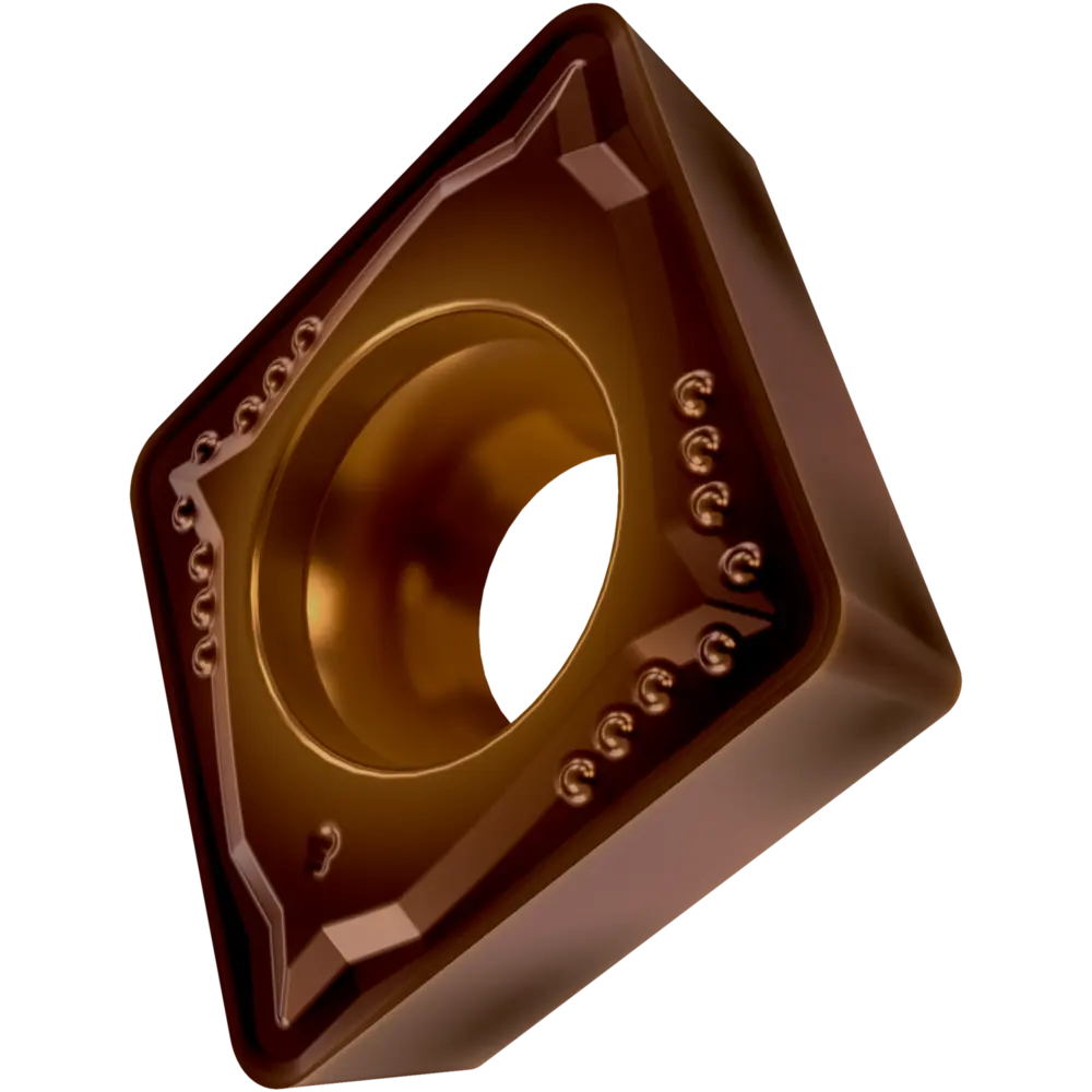 Односторонняя позитивная токарная пластина, ромбовидная 80° с зазором 7°, диаметр вписанной окружности 12,7 мм, толщина 4,76 мм, радиус вершины 1,2 мм, точность индексации в соответствии с классом допуска ISO-M, стружколом FM со скругленными режущими кромками, из сплава T8430, мелкозернистого твердого сплава WC-Co с покрытием PVD в диапазонах ISO P20 -P40 и M20 -M35, для чистовой и средней обработки сталей и нержавеющих сталей.