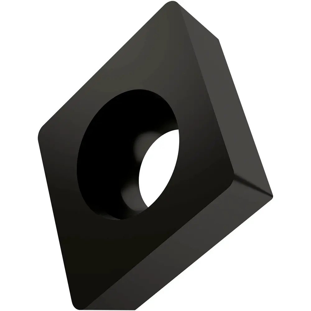 Односторонняя позитивная токарная пластина, ромб 80° с зазором 7°, диаметром вписанной окружности 9,525 мм, толщиной 3,97 мм, радиусом при вершине 0,8 мм и точностью индексации в соответствии с классом допуска ISO-M, из сплава T5315, твердого сплава WC-Co с покрытием MT-CVD в диапазоне ISO K10 -K25, для чистовой и получистовой обработки чугуна.
