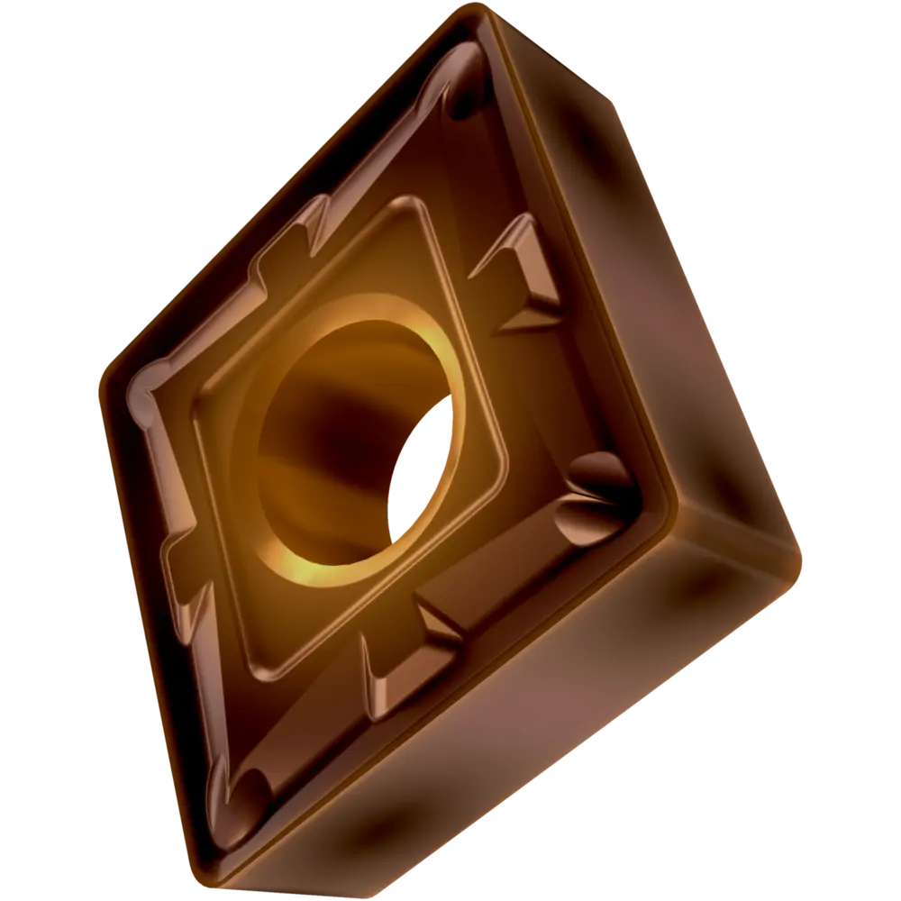 Двусторонняя негативная токарная пластина, ромбовидная 80° с диаметром вписанной окружности 12,7 мм, толщиной 4,76 мм, радиусом при вершине 0,8 мм, точностью индексации в соответствии с классом допуска ISO-M, стружколомом M со скругленными режущими кромками, из сплава T8430, мелкозернистого твердого сплава WC-Co с покрытием PVD в диапазоне ISO P20 -P40, для чистовой и тяжелой обработки сталей.