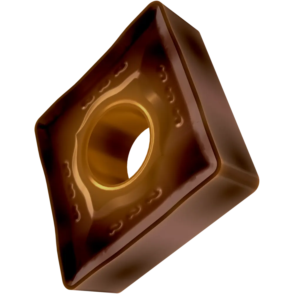Двусторонняя негативная токарная пластина, ромбовидная 80° с диаметром вписанной окружности 12,7 мм, толщиной 4,76 мм, радиусом при вершине 0,8 мм, точностью индексации в соответствии с классом допуска ISO-M, стружколомом NR2 со скругленными режущими кромками, из сплава T8430, мелкозернистого твердого сплава WC-Co с покрытием PVD в диапазонах ISO P20 -P40 и M20 -M35, для средней и сверхтяжелой обработки сталей и нержавеющих сталей.