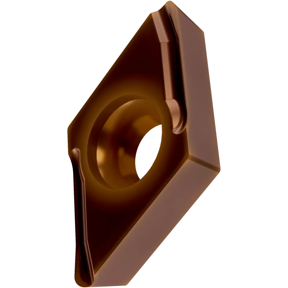 Односторонняя позитивная токарная пластина, ромбовидная 55° с зазором 7°, диаметр вписанной окружности 9,525 мм, толщина 3,97 мм, радиус вершины 0,4 мм, точность индексации в соответствии с классом допуска ISO-G, стружколом SI со скругленными режущими кромками, из сплава T8430, мелкозернистого твердого сплава WC-Co с покрытием PVD в диапазонах ISO P20 -P40 и M20 -M35, для чистовой и средней обработки сталей и нержавеющих сталей с помощью левостороннего токарного резца.