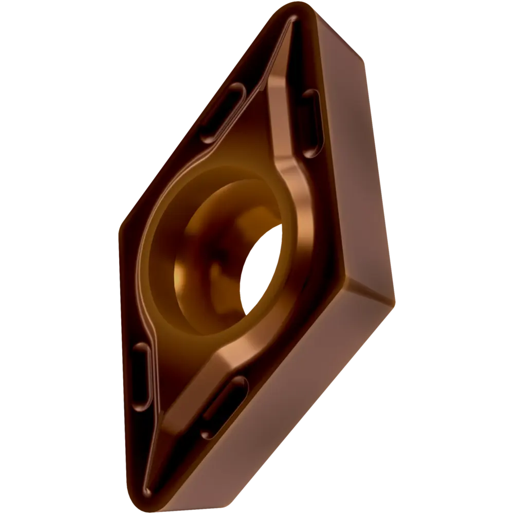 Односторонняя позитивная токарная пластина, ромбовидная 55° с зазором 7°, диаметр вписанной окружности 6,35 мм, толщина 2,38 мм, радиус вершины 0,4 мм, точность индексации в соответствии с классом допуска ISO-M, стружколом FF2 со скругленными режущими кромками, из сплава T8430, мелкозернистого твердого сплава WC-Co с покрытием PVD в диапазоне ISO P20 -P40, для чистовой и средней обработки сталей.