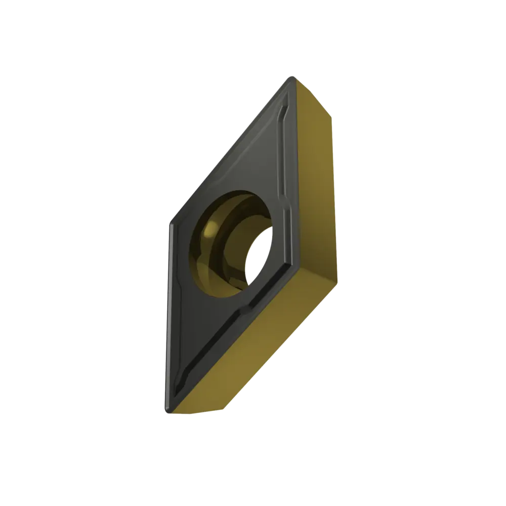 Односторонняя позитивная токарная пластина, ромбовидная 55° с зазором 7°, диаметр вписанной окружности 9,525 мм, толщина 3,97 мм, радиус вершины 0,4 мм, точность индексации в соответствии с классом допуска ISO-M, стружколом FM2 со скругленными режущими кромками, из сплава T9415, функционально-градуированного твердого сплава WC-Co с покрытием MT-CVD в диапазоне ISO P05 -P30, для чистовой и получистовой обработки сталей.