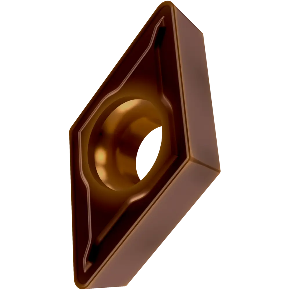 Односторонняя позитивная токарная пластина, ромбовидная 55° с зазором 7°, диаметр вписанной окружности 9,525 мм, толщина 3,97 мм, радиус вершины 0,8 мм, точность индексации в соответствии с классом допуска ISO-M, стружколом FM2 со скругленными режущими кромками, из сплава T8430, мелкозернистого твердого сплава WC-Co с покрытием PVD в диапазоне ISO P20 -P40, для чистовой и средней обработки сталей.