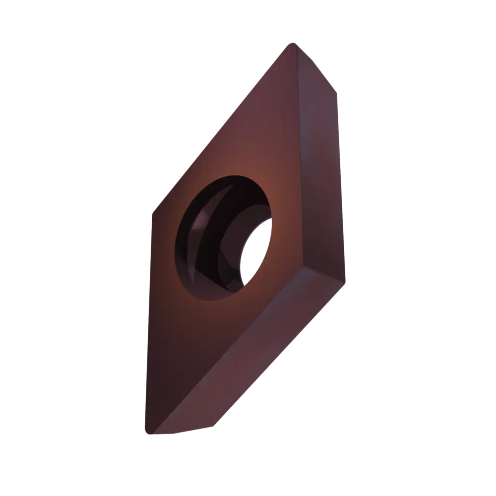 Односторонняя позитивная токарная пластина, ромбовидная 55° с зазором 7°, диаметром вписанной окружности 9,525 мм, толщиной 3,97 мм, радиусом при вершине 0,4 мм и точностью индексации в соответствии с классом допуска ISO-M, из сплава T8415.