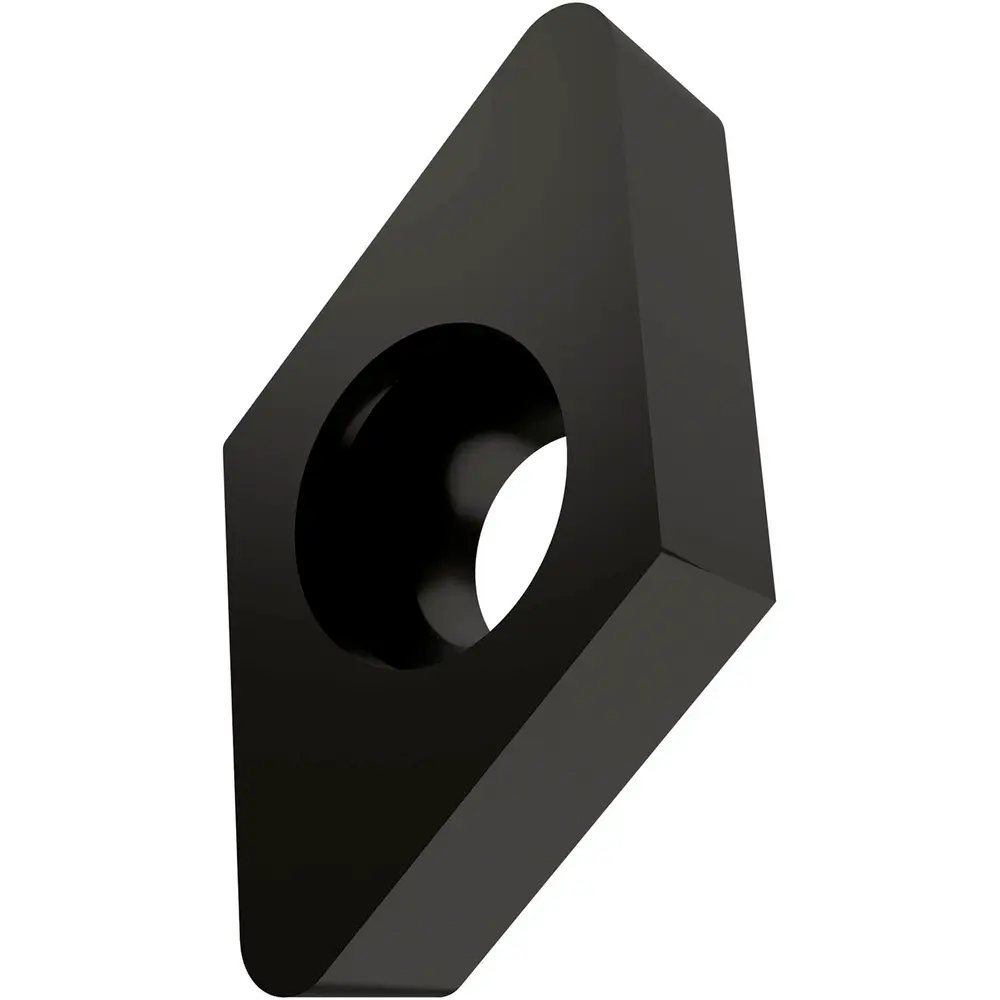 Односторонняя позитивная токарная пластина, ромб 55° с зазором 7°, диаметром вписанной окружности 9,525 мм, толщиной 3,97 мм, радиусом при вершине 0,8 мм и точностью индексации в соответствии с классом допуска ISO-M, из сплава T5315, твердого сплава WC-Co с покрытием MT-CVD в диапазоне ISO K10 -K25, для чистовой и получистовой обработки чугуна.
