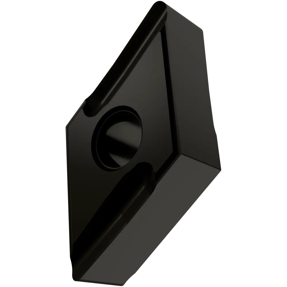 Двусторонняя негативная токарная пластина, ромбовидная 55° с диаметром вписанной окружности 12,7 мм, толщиной 6,35 мм, радиусом при вершине 0,8 мм, точностью индексации в соответствии с классом допуска ISO M, стружколомом SI со скругленными режущими кромками, из сплава T9335, функционально-градуированного твердого сплава WC-Co с покрытием MT-CVD в диапазонах ISO P20 -P45 и M15 -M40, для средней и тяжелой обработки сталей и нержавеющих сталей с помощью правостороннего токарного резца.