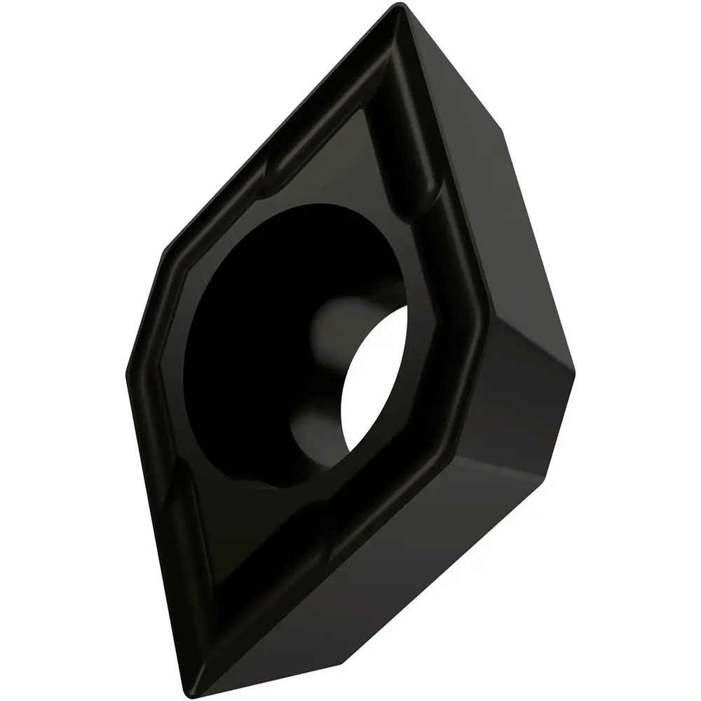 Односторонняя позитивная токарная пластина, ромбовидная 75° с зазором 11°, диаметр вписанной окружности 5,56 мм, толщина 2,38 мм, радиус вершины 0,2 мм, точность индексации в соответствии с классом допуска ISO-M, стружколом NF2 со скругленными режущими кромками, из сплава T7325, функционально-градуированного твердого сплава WC-Co с покрытием MT-CVD в диапазонах ISO M10 - M25 и S10 - S25, для чистовой и получистовой обработки нержавеющих сталей и суперсплавов.