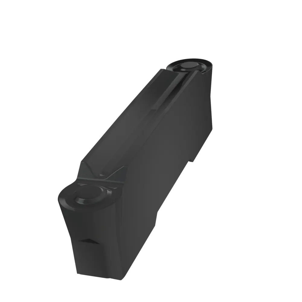 Двухсторонняя отрезная и канавочная пластина длиной 25 мм с шириной режущей кромки 4 мм и полным радиусом 2 мм, допуск по ширине режущей кромки ±0,05. Сорт T7325 Функционально-градуированный карбид WC-Co с покрытием MT-CVD в диапазонах ISO M10-M25 и K15-K25 для обработки нержавеющей стали и чугуна. Геометрия MM, с формой полного радиуса для копировального профилирования и продольного точения, а также непрерывного и прерывистого резания.