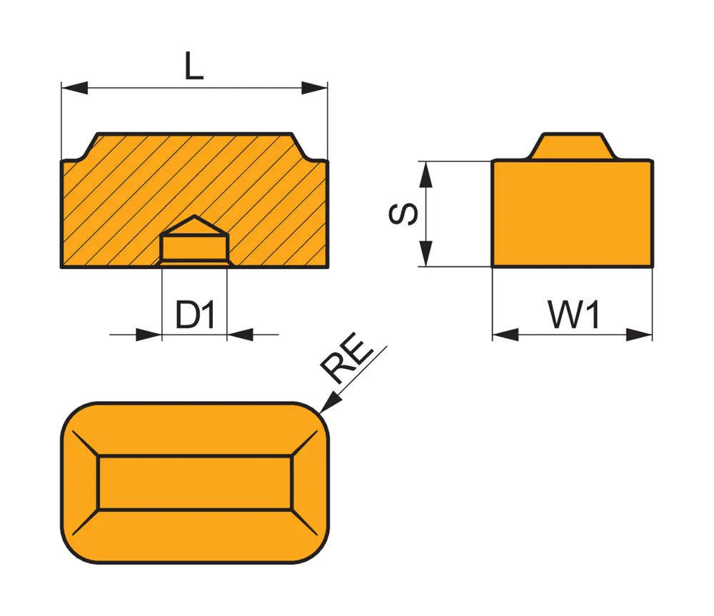 Односторонняя негативная пластина для зачистки прутка, прямоугольная, длиной 31 мм, толщиной 10 мм для глубины резания 4 мм, точность индексации в соответствии с классом допуска ISO-M, стружколом M: с подготовкой режущей кромки N-M, из сплава T9415, функционально-градуированного твердого сплава WC-Co с покрытием MT-CVD в диапазоне ISO P05 -P30, для сталей