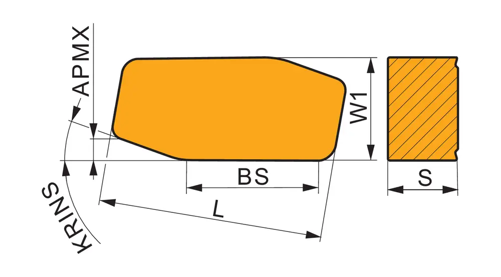 Двусторонняя негативная пластина для зачистки прутка, прямоугольная, длиной 38,25 мм, толщиной 12 мм для глубины резания 4 мм, со стружколомом PR, из сплава 6630, функционально-градуированного твердого сплава WC-Co с покрытием MT-CVD в диапазоне P15 -P35 по ISO, для сталей