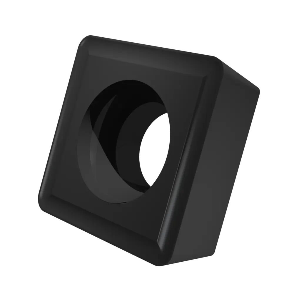 Односторонняя позитивная токарная пластина, квадратная с зазором 7°, диаметр вписанной окружности 9,525 мм, толщина 3,97 мм, радиус вершины 0,8 мм, точность индексации в соответствии с классом допуска ISO M, стружколом RF со скругленными режущими кромками, из сплава T9325, функционально-градуированного твердого сплава WC-Co с покрытием MT-CVD в диапазоне ISO P15 -P35, для чистовой и тяжелой обработки сталей.