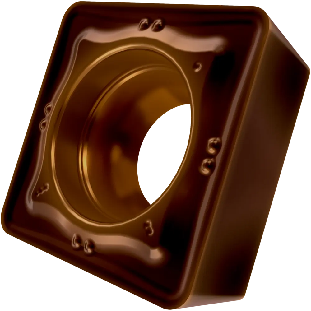 Односторонняя позитивная токарная пластина, квадратная с зазором 7°, диаметр вписанной окружности 9,525 мм, толщина 3,97 мм, радиус вершины 0,8 мм, точность индексации в соответствии с классом допуска ISO-M, стружколом RM со скругленными режущими кромками, из сплава T8430, мелкозернистого твердого сплава WC-Co с покрытием PVD в диапазонах ISO P20-P40 и M20-M35, для чистовой и тяжелой обработки сталей и нержавеющих сталей.