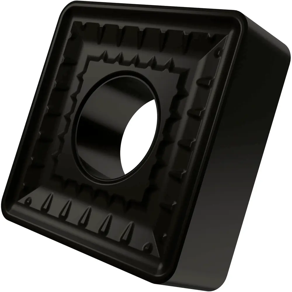 Двусторонняя негативная токарная пластина, квадратная с диаметром вписанной окружности 25,4 мм, толщиной 9,52 мм, радиусом при вершине 2,4 мм, точностью индексации в соответствии с классом допуска ISO-M, стружколомом 923 со скругленными режущими кромками с фаской, из сплава T9335, функционально-градуированного твердого сплава WC-Co с покрытием MT-CVD в диапазонах ISO P20 -P45 и M15 -M40, для тяжелой и сверхтяжелой обработки сталей и нержавеющих сталей.