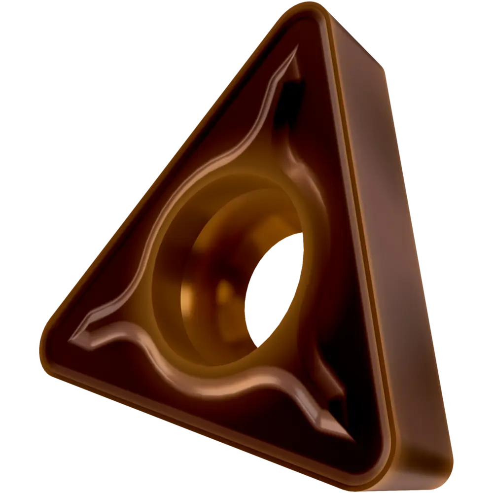 Односторонняя позитивная токарная пластина, треугольная с зазором 7°, диаметр вписанной окружности 6,35 мм, толщина 2,38 мм, радиус вершины 0,4 мм, точность индексации в соответствии с классом допуска ISO M, стружколом FM2 со скругленными режущими кромками, из сплава T8430, мелкозернистого твердого сплава WC-Co с покрытием PVD в диапазоне ISO P20 -P40, для чистовой и средней обработки сталей.