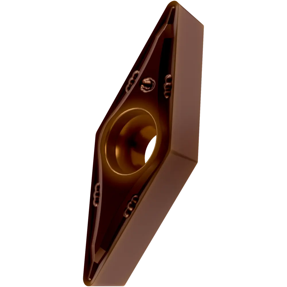 Односторонняя позитивная токарная пластина, ромб 35° с зазором 5°, диаметр вписанной окружности 9,525 мм, толщина 4,76 мм, радиус при вершине 0,4 мм, точность индексации в соответствии с классом допуска ISO-M, стружколом FM со скругленными режущими кромками, из сплава T8415.