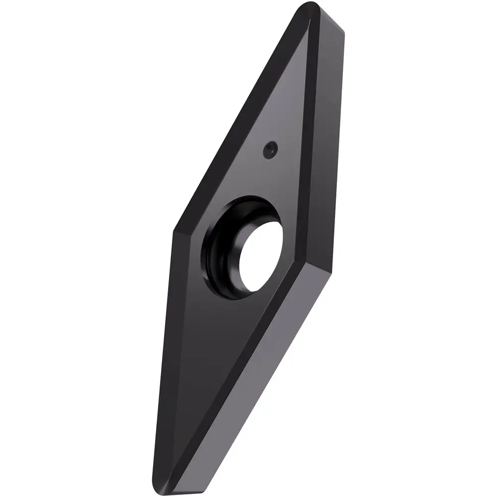 Односторонняя позитивная токарная пластина, ромбовидная 35° с зазором 7°, диаметр вписанной окружности 7,94 мм, толщина 3,18 мм, радиус вершины 0,1 мм, точность индексации в соответствии с классом допуска ISO-G, стружколом SF2 со скругленными режущими кромками, из сплава T6310, сверхмелкозернистый карбид WC-Co с покрытием PVD в диапазонах ISO M01 -M15 и S01 -S15, для чистовой и средней обработки нержавеющих сталей и суперсплавов