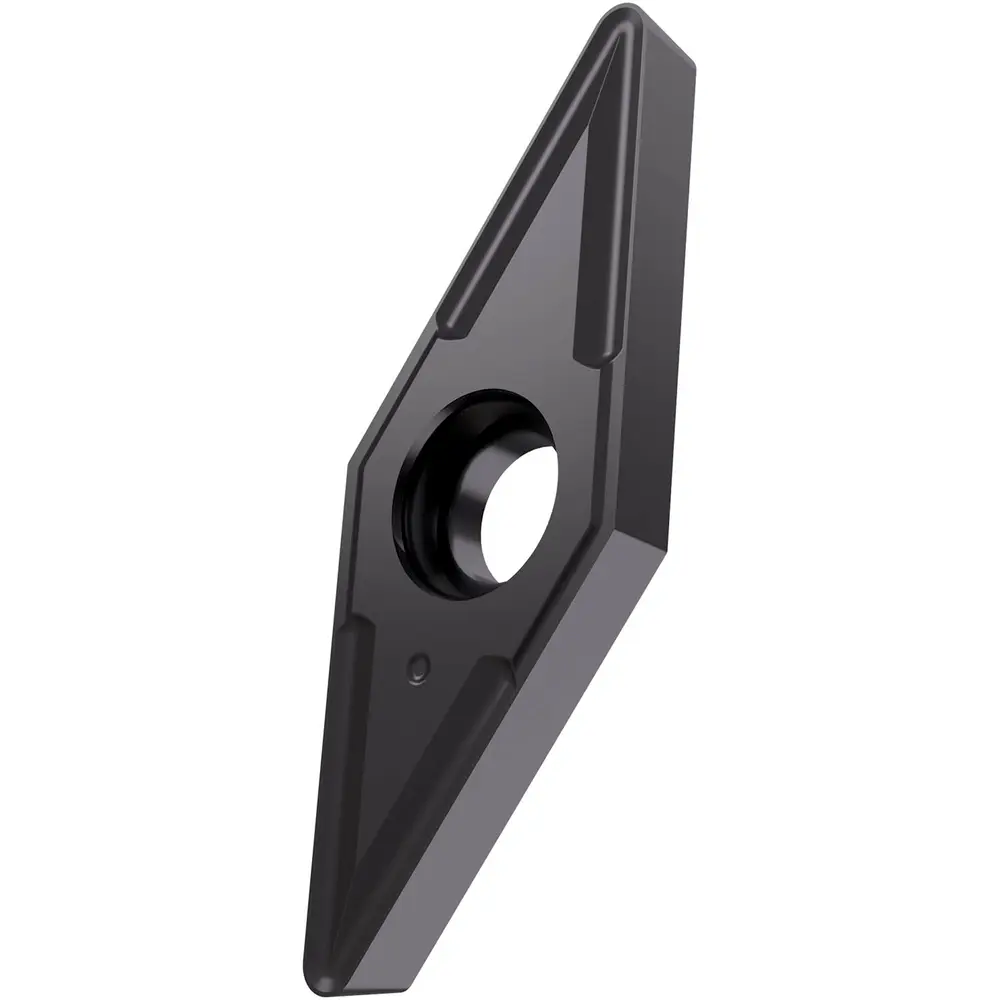Односторонняя позитивная токарная пластина, ромбовидная 35° с зазором 7°, диаметр вписанной окружности 7,94 мм, толщина 3,18 мм, радиус вершины 0,4 мм, точность индексации в соответствии с классом допуска ISO-G, стружколом NF2 со скругленными режущими кромками, из сплава T6310, сверхмелкозернистый карбид WC-Co с покрытием PVD в диапазонах ISO M01 -M15 и S01 -S15, для чистовой и средней обработки нержавеющих сталей и суперсплавов