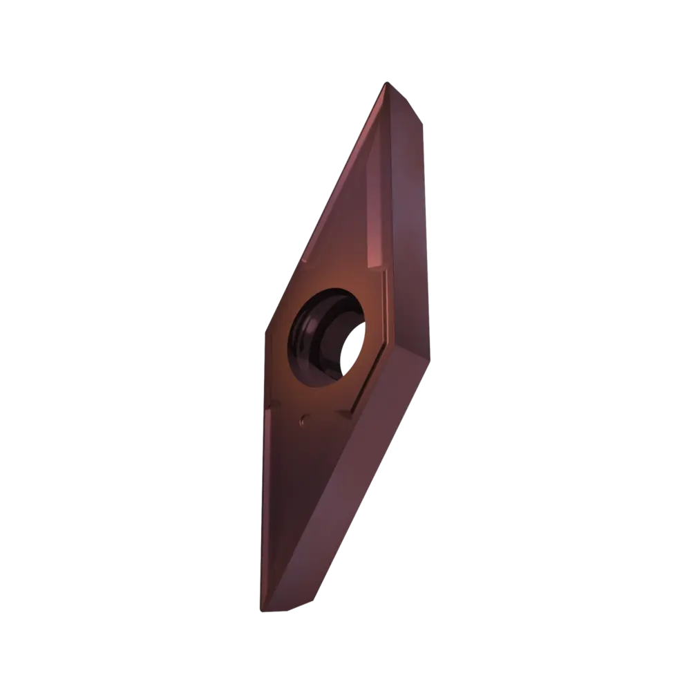 Односторонняя позитивная токарная пластина, ромб 35° с зазором 7°, диаметр вписанной окружности 7,94 мм, толщина 3,18 мм, радиус при вершине 0,4 мм, точность индексации в соответствии с классом допуска ISO-G, стружколом NF2 со скругленными режущими кромками, из сплава T8415.