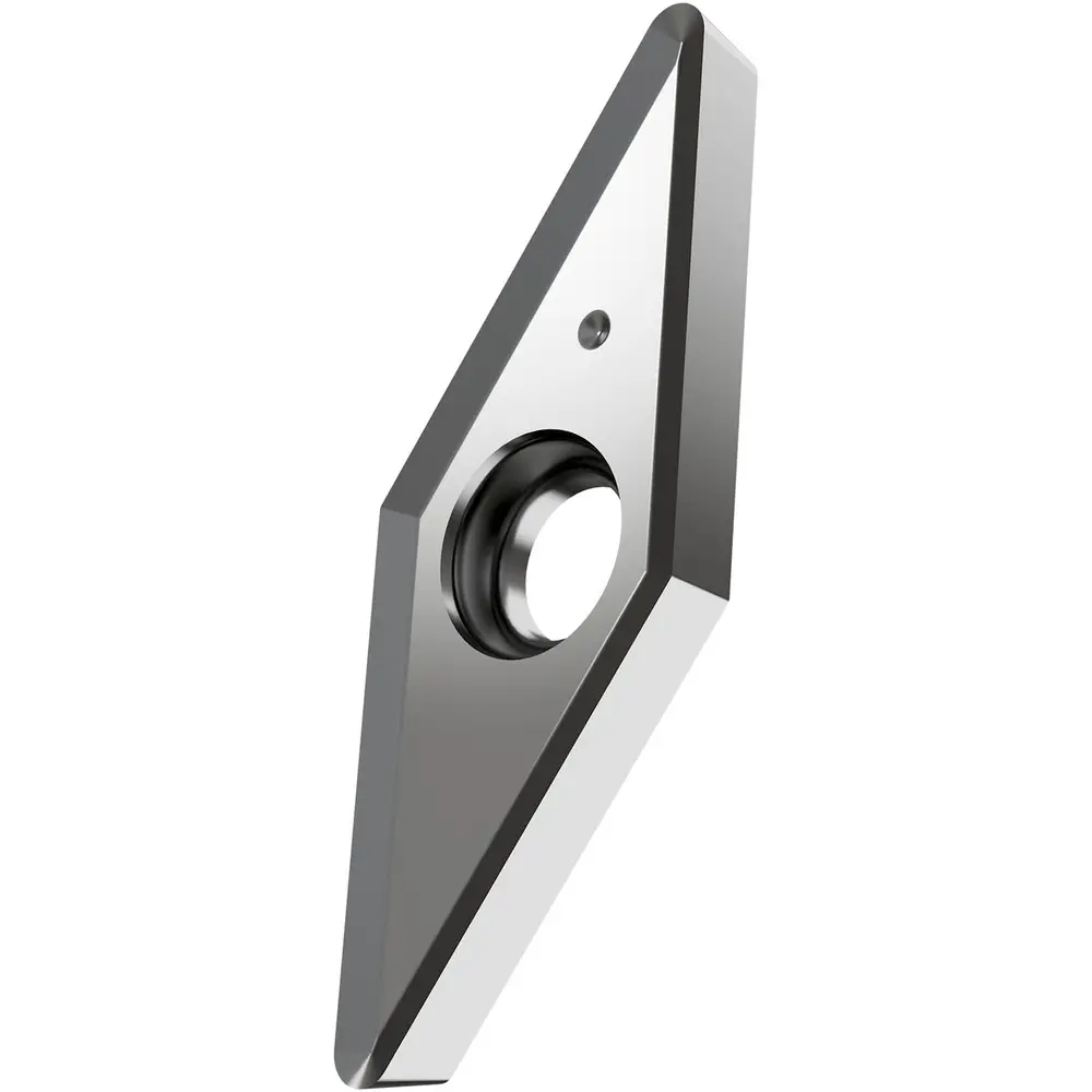 Односторонняя позитивная токарная пластина, ромбовидная 35° с зазором 7°, диаметр вписанной окружности 7,94 мм, толщина 3,18 мм, радиус вершины 0,4 мм, точность индексации в соответствии с классом допуска ISO-G, стружколом SF2 со скругленными режущими кромками, из сплава H07, непокрытый карбид WC-Co в диапазоне ISO S01 -S20, для чистовой и получистовой обработки суперсплавов.
