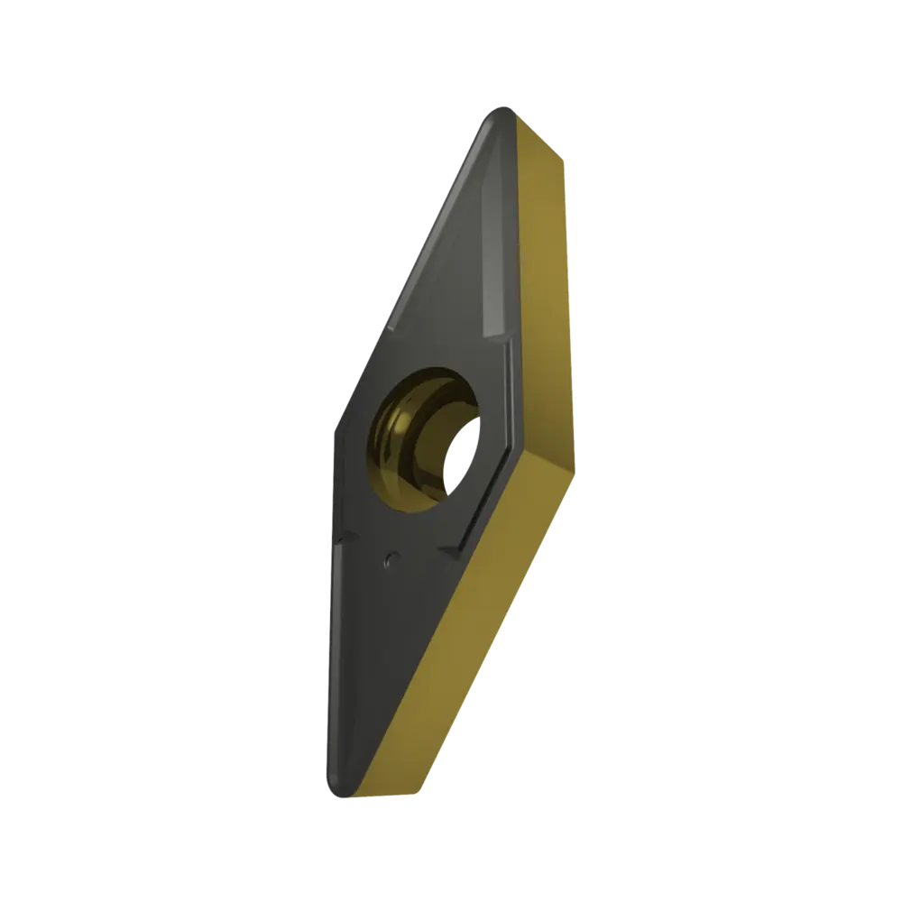 Односторонняя позитивная токарная пластина, ромбовидная 35° с зазором 7°, диаметр вписанной окружности 7,94 мм, толщина 3,18 мм, радиус вершины 0,8 мм, точность индексации в соответствии с классом допуска ISO-G, стружколом NF2 со скругленными режущими кромками, из сплава T9415, функционально-градуированного твердого сплава WC-Co с покрытием MT-CVD, для тонкой и средней обработки