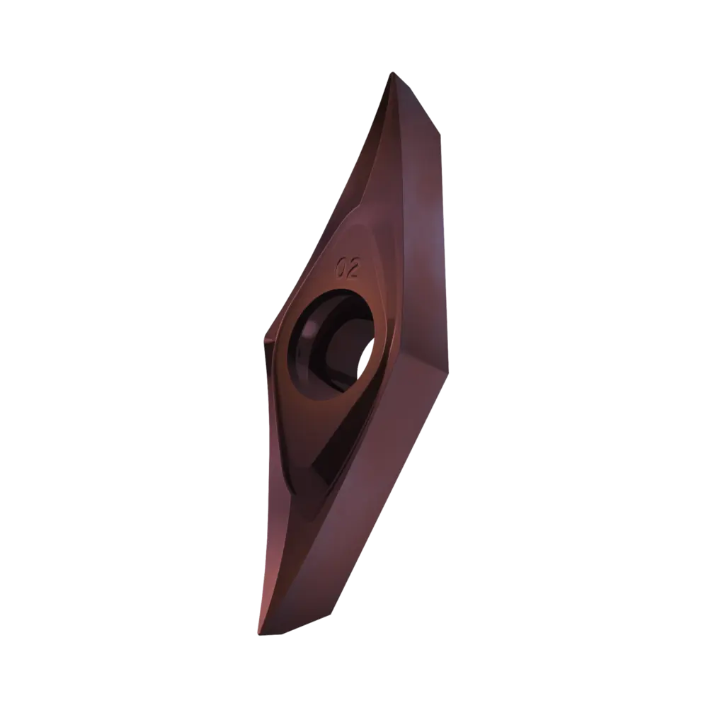 Односторонняя позитивная токарная пластина, ромб 35° с зазором 7°, диаметр вписанной окружности 9,525 мм, толщина 4,76 мм, радиус при вершине 0,4 мм, точность индексации в соответствии с классом допуска ISO-G, стружколом SF3 со скругленными режущими кромками, из сплава T8415.