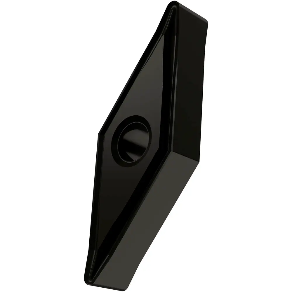 Двусторонняя негативная токарная пластина, ромбовидная 35° с диаметром вписанной окружности 9,525 мм, толщиной 4,76 мм, радиусом при вершине 0,8 мм, точностью индексации в соответствии с классом допуска ISO M, стружколомом NF со скругленными режущими кромками, из сплава T7325, функционально-градуированного твердого сплава WC-Co с покрытием MT-CVD в диапазоне ISO M10 - M25, для чистовой и получистовой обработки нержавеющих сталей.