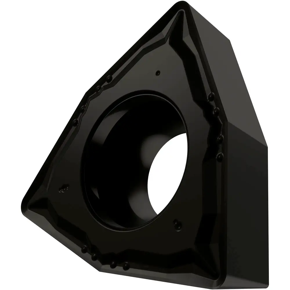 Односторонняя позитивная токарная пластина, 80° тригон с зазором 7°, диаметр вписанной окружности 9,525 мм, толщина 3,97 мм, радиус вершины 0,8 мм, точность индексации в соответствии с классом допуска ISO-M, стружколом FM со скругленными режущими кромками, из сплава T7335, функционально-градуированного твердого сплава WC-Co с покрытием MT-CVD в диапазоне ISO M20 - M40, для чистовой и получистовой обработки нержавеющих сталей.