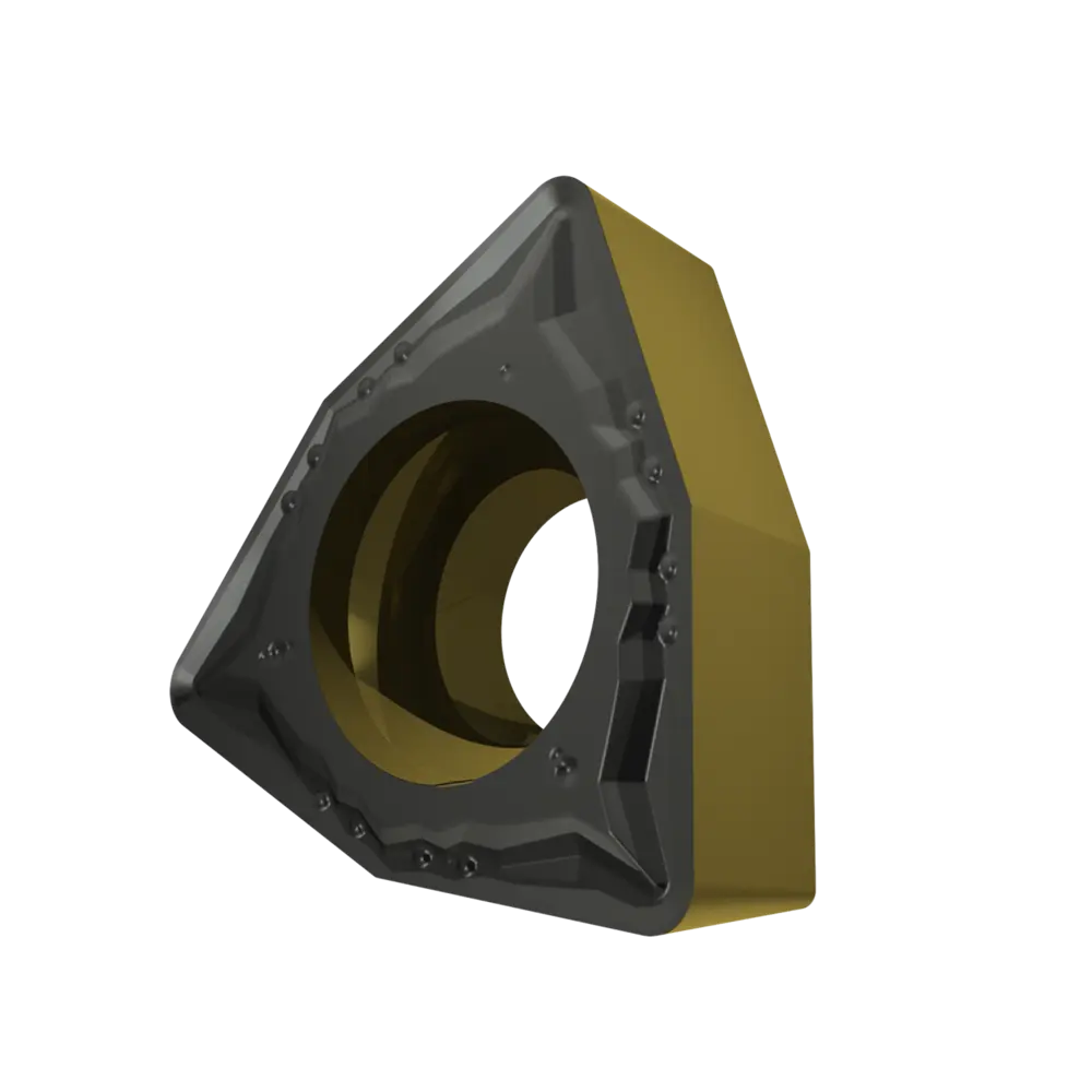 Односторонняя позитивная токарная пластина, тригон 80° с зазором 7°, диаметр вписанной окружности 9,525 мм, толщина 3,97 мм, радиус вершины 0,8 мм, точность индексации в соответствии с классом допуска ISO-M, стружколом FM со скругленными режущими кромками, из сплава T9415, функционально-градуированного твердого сплава WC-Co с покрытием MT-CVD в диапазоне ISO P05 -P30, для чистовой и получистовой обработки сталей.