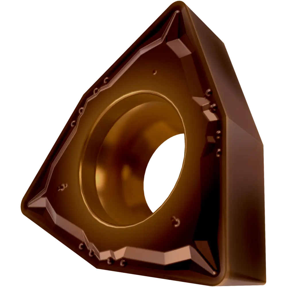 Односторонняя позитивная токарная пластина, 80° тригон с зазором 7°, диаметр вписанной окружности 12,7 мм, толщина 4,76 мм, радиус вершины 0,4 мм, точность индексации в соответствии с классом допуска ISO-M, стружколом FM со скругленными режущими кромками, из сплава T8430, мелкозернистого твердого сплава WC-Co с покрытием PVD в диапазонах ISO P20 -P40 и M20 -M35, для чистовой и средней обработки сталей и нержавеющих сталей.