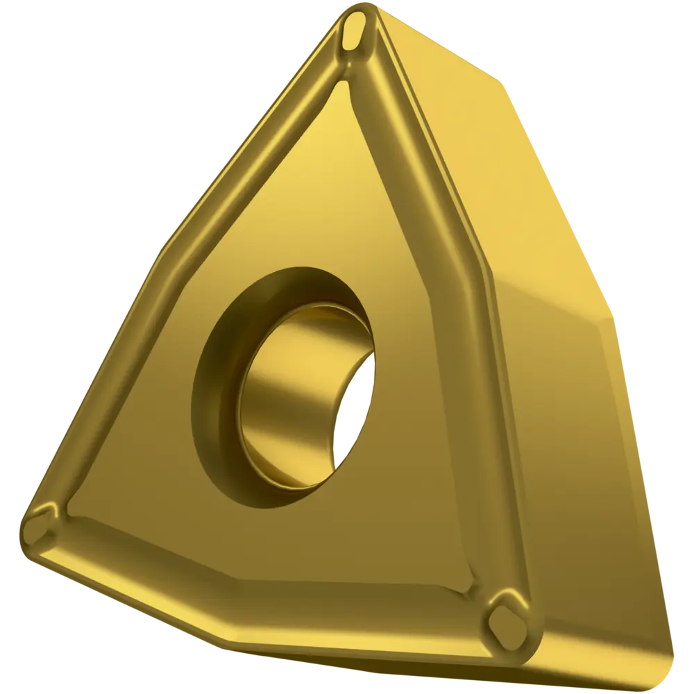 Двусторонняя негативная пластина для зачистки прутка, 80° тригон с диаметром вписанной окружности 22,225 мм, толщиной 9,52 мм для глубины резания 3,5 мм, точность индексации в соответствии с классом допуска ISO-G, стружколом PM с подготовкой режущей кромки S02, из сплава 6630, функционально-градуированного твердого сплава WC-Co с покрытием MT-CVD в диапазоне ISO P15 -P35, для сталей средней прочности.