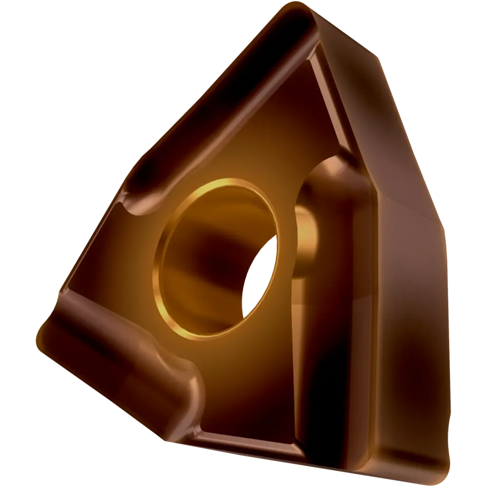 Двусторонняя негативная токарная пластина, 80° тригон с диаметром вписанной окружности 12,7 мм, толщина 4,76 мм, радиус вершины 1,2 мм, точность индексации в соответствии с классом допуска ISO M, стружколом SI со скругленными режущими кромками, из сплава T8430, мелкозернистого твердого сплава WC-Co с покрытием PVD в диапазонах ISO P20 - P40 и M20 - M35, для средней и тяжелой обработки сталей и нержавеющих сталей с помощью правостороннего токарного резца.