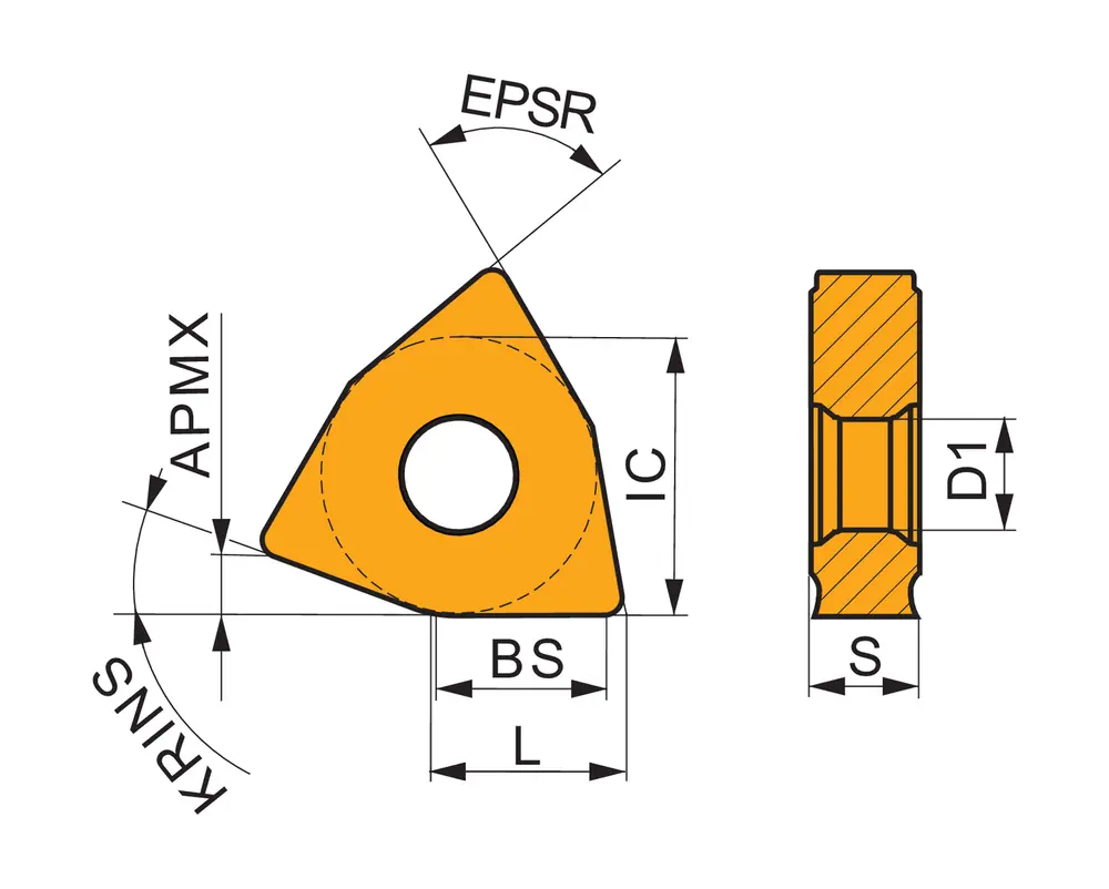 Двусторонняя негативная пластина для зачистки прутка, 80° тригон с диаметром вписанной окружности 31,75 мм, толщина 13 мм для глубины резания 8 мм, точность индексации в соответствии с классом допуска ISO-M, стружколом PR, из сплава T9226, функционально-градуированного твердого сплава WC-Co с покрытием MT-CVD в диапазоне ISO P15 -P35, для сталей