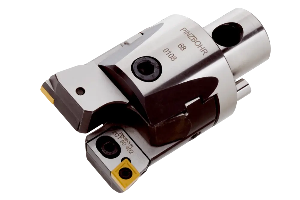 Расточная головка патронного типа размером 68 с углом в плане 90° и синхронизированной регулировкой для черновой обработки в диапазоне диаметров от 80 до 102 мм, в комплекте с картриджами 2CT 90 300 для установки пластин TC.. 16T3.. для продольной расточки с уступом и без него.
