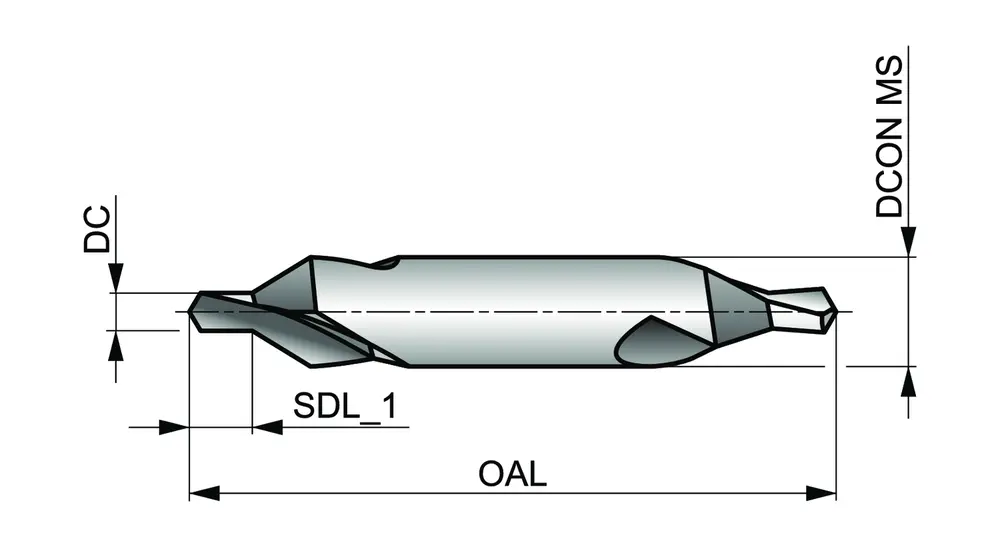 Центровочное сверло (комбинированное сверло и зенковка) с прямым коническим сечением 60°, двухсторонним цилиндрическим корпусом, диаметром сверла 2,50 мм, диаметром корпуса 6,30 мм и общей длиной 45 мм, в соответствии со стандартом DIN 333A для изготовления стандартизированных центровых отверстий в соответствии с DIN 332, часть 1, форма A, из быстрорежущей стали HSS-E на основе кобальта с блестящей отделкой для обработки на станке без механического воздействия, обычной углеродистой и легированной стали, а также серого чугуна.