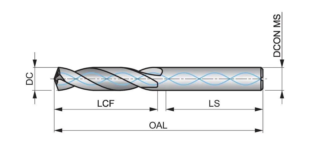 Высокопроизводительное сверло FORCE M с цилиндрическим хвостовиком DIN 6535HA NC, диаметром 5,1 мм, общей длиной 66 мм и длиной канавки 28 мм в соответствии со стандартом DIN 6537 K с 4-гранной S-образной заточкой под углом 140°, цельное твердосплавное с покрытием TiAlN, непрерывно утонченной параллельной перемычкой и сквозными отверстиями для подачи СОЖ для сверления в 3D без вывода сверла в нержавеющей стали и суперсплавах